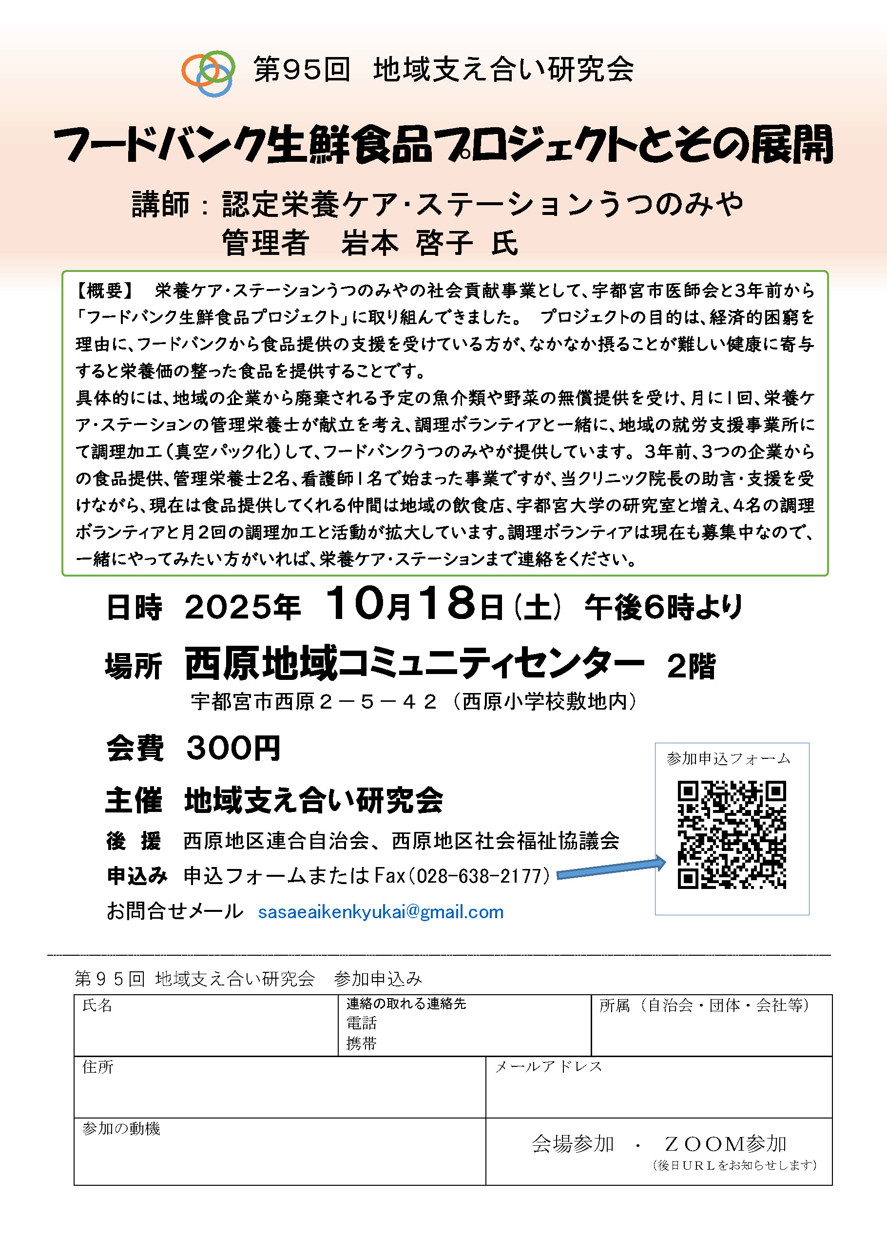 第95回地域支え合い研究会『フードバンク生鮮食品プロジェクトとその展開』(要申込)