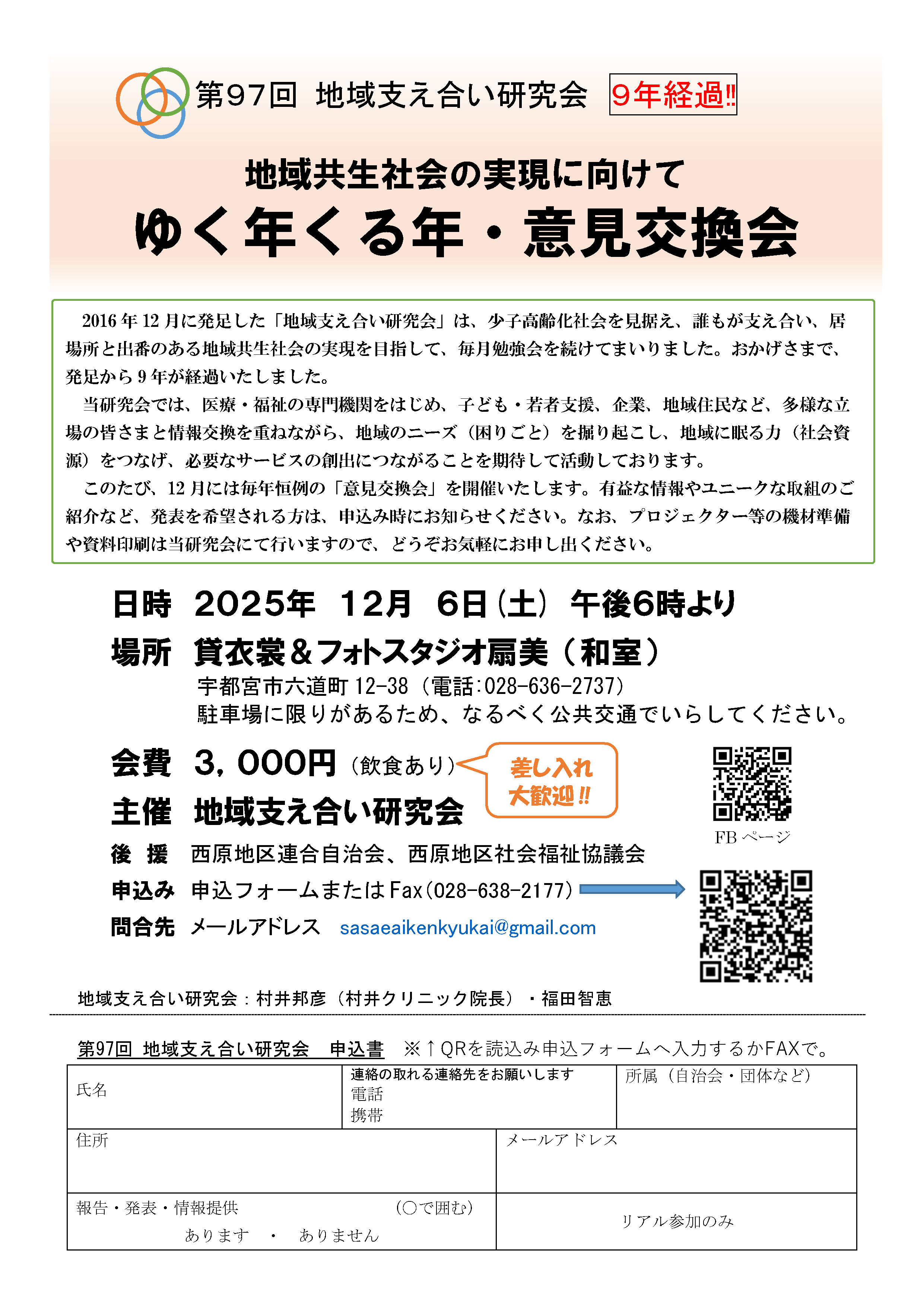 第97回地域支え合い研究会『ゆく年くる年・意見交換会』(要申込)