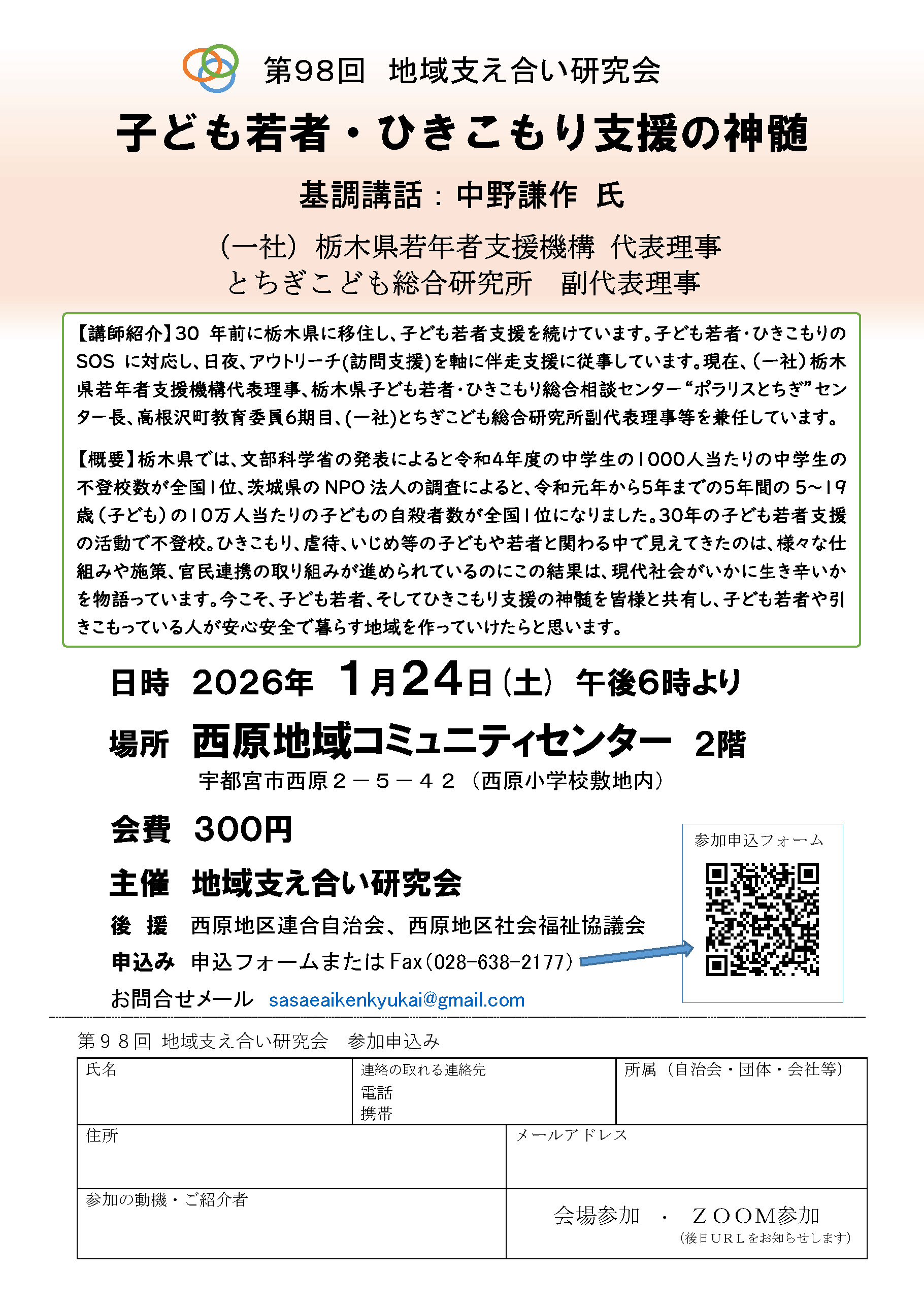 第98回地域支え合い研究会『子ども若者・ひきこもり支援の神髄』(要申込)